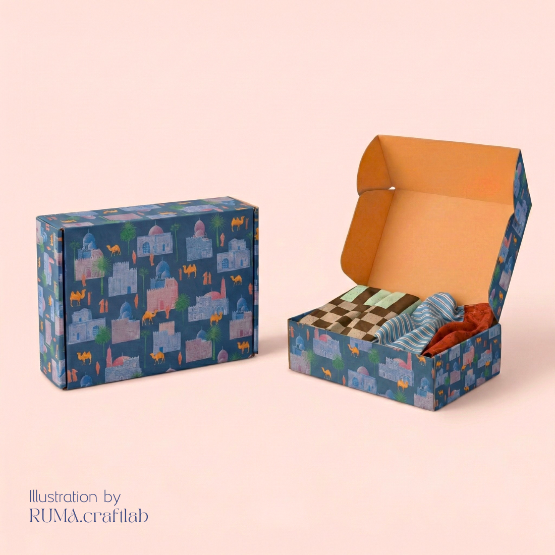 Exclusive Ramadan & Lebaran Themes: Our corrugated boxes feature vibrant, full-coverage edge-to-edge printing. Choose from our award-winning seasonal illustration themes designed to make a lasting impression on your VIP clients and employees: